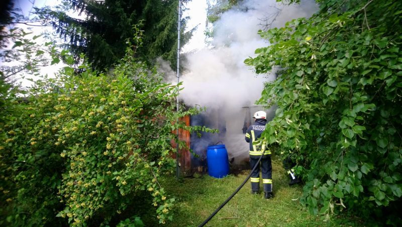 Beim Eintreffen wurde eine Enstehungsbrand in einer Gartenhütte festgestellt. Durch den raschen Einsatz konnte jedoch ein Ausbreiten des Brandes auf nebenstehende Bäume und Sträuche verhindert werden.