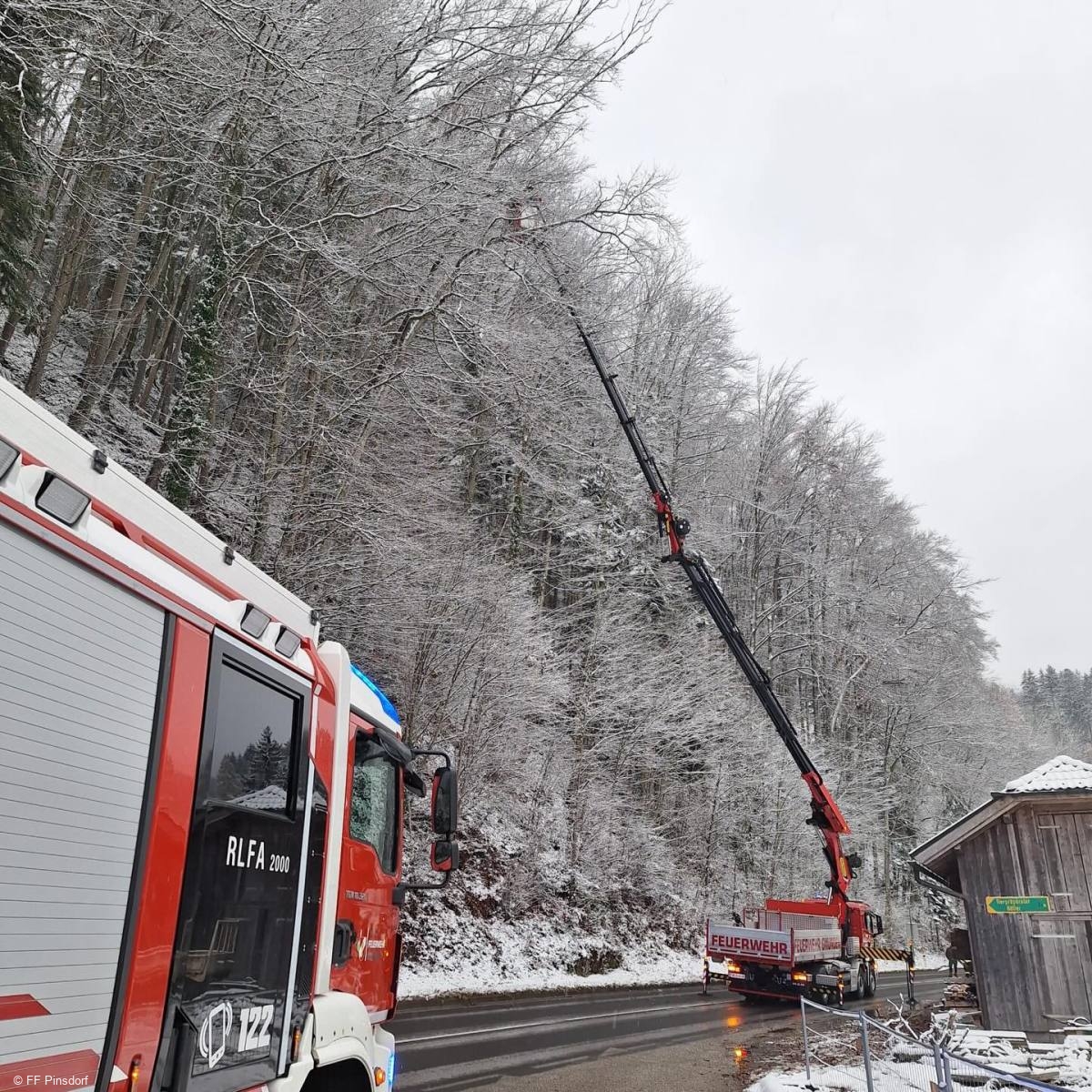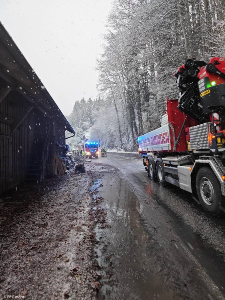 Die FF Pinsdorf wurde am 21.11.2025 um 12:35 Uhr zu einem technischen Einsatz alarmiert, nachdem ein Baum drohte, auf die Landesstraße zu stürzen. Der Streckendienst der Landesstraßenverwaltung stellte fest, dass der Baum umgehend entfernt werden musste, da Gefahr für den Straßenverkehr bestand.